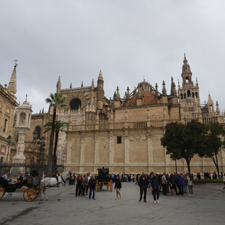We rounded out our first day with a nice long wander through town. There were lovely streets and squares and beautiful buildings at every turn. You can hire horse drawn carriages to travel around town which was neat to see. We stumbled across the Setas de Sevilla which is a massive wooden sculpture with an archeological museum, rooftop walkway and viewpoint. It was really something to see. We also saw the historic square of Alameda of Hercules which was complete in 1574.